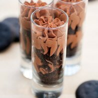 - Scoop the cheesecake mixture into a pastry bag (or a large Ziplock...which is what I use) fitted with a pastry tip. Layer the cheesecake mixture and Thin Mint crumble in small glasses (I have teeny party desire glasses, but shot glasses will even work, or martini glasses!).