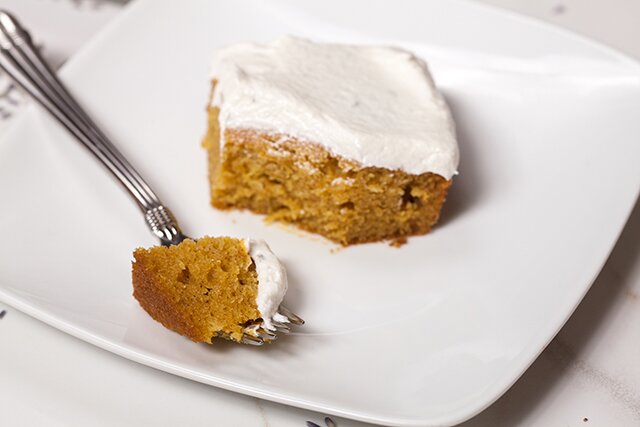 Pumpkin Sheet Cake with Lavender-Sour Cream Frosting