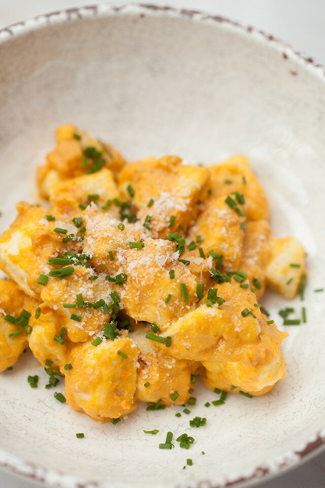 Ricotta Gnocchi with Roasted Carrot Cream Sauce