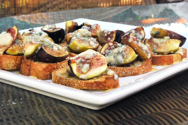 Roasted Fig Crostinis with Honey and Blue Cheese