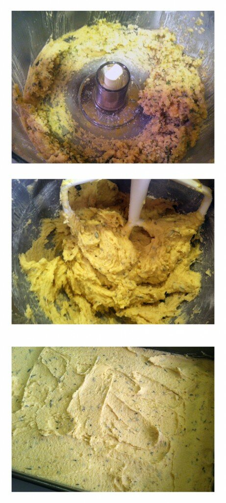 - In the bowl of an electric mixer fitted with the paddle attachment, cream together the pine nut mixture, butter, and sugar until light and fluffy. Add in the flour and salt and beat until just combined. Spread into a 9x13x2 baking dish.