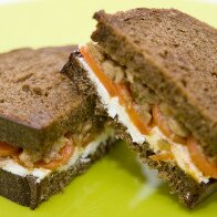 Moroccan Carrot and Goat Cheese Sandwich with Green Olive Tapenade